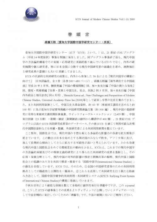 | 収録書籍 | ICCS 現代中国学ジャーナル(創刊準備号),第1巻,第1号,3月23日(2009) |
