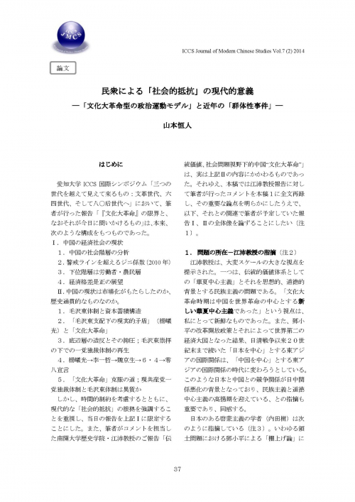 ICCS 現代中国学ジャーナル,第7巻,第2号,6月26日(2014) / ICCS現代中国学ジャーナル