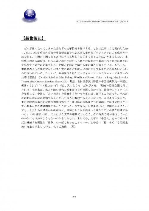 | 収録書籍 | ICCS 現代中国学ジャーナル,第7巻,第2号,6月26日(2014) |