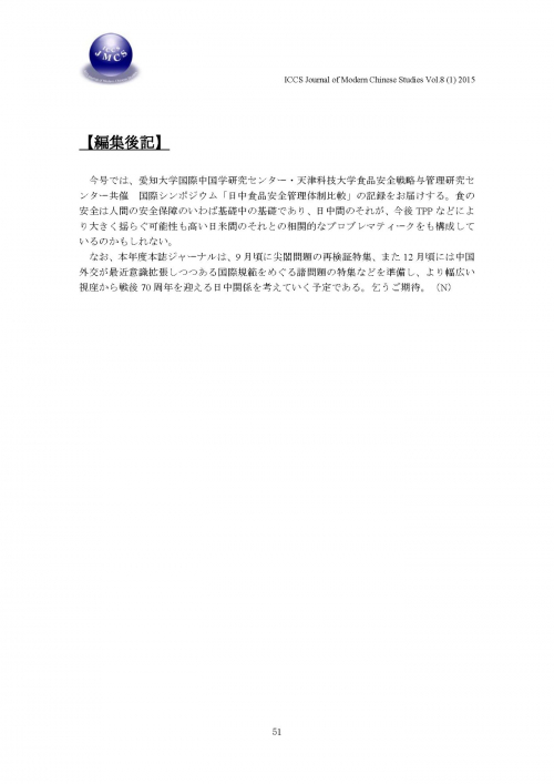 収録書籍 | ICCS 現代中国学ジャーナル,第8巻,第1号,6月25日(2015) |