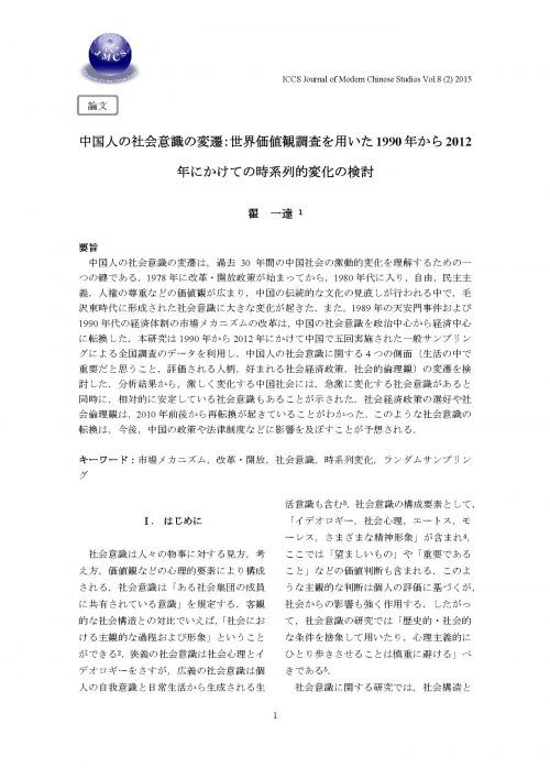 ICCS 現代中国学ジャーナル,第8巻,第2号,12月18日(2015) / ICCS現代中国学ジャーナル