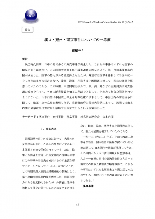 | 収録書籍 | ICCS 現代中国学ジャーナル,第10巻,第1号,6月30日(2017) |
