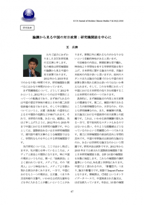 | 収録書籍 | ICCS現代中国学ジャーナル,第10巻,第2号,1月31日(2018) |