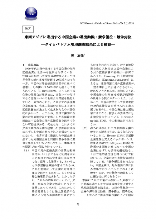 東南アジアに進出する中国企業の進出動機・競争優位・競争劣位―タイとベトナム現地調査結果による検証―