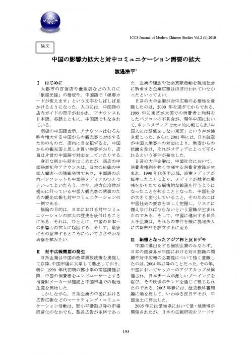 | 収録書籍 | ICCS 現代中国学ジャーナル,第2巻,第1号,3月30日(2010) |