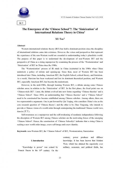 The Emergence of the ‘Chinese School’?: The ‘Sinicization’ of International Relations Theory in China