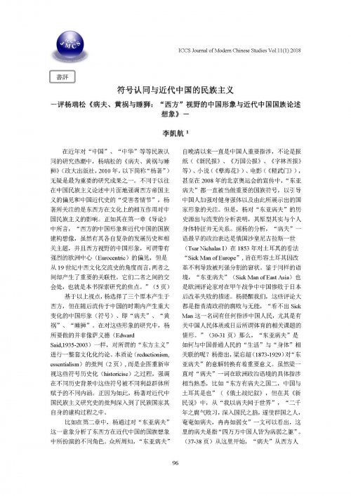 符号认同与近代中国的民族主义―评杨瑞松《病夫、黄祸与睡狮:“西方”视野的中国形象与近代中国国族论述想象》―