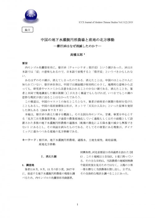| 収録書籍 | ICCS現代中国学ジャーナル,第11巻,第2号,1月28日(2019) |