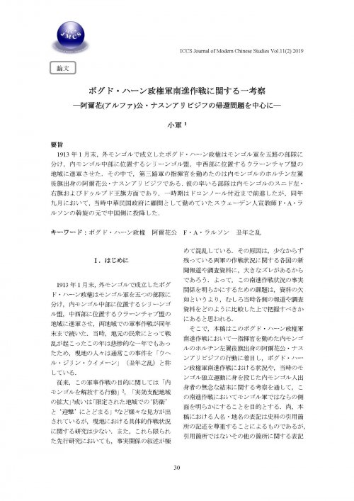 ボグド・ハーン政権軍南進作戦に関する一考察―阿爾花(アルファ)公・ナスンアリビジフの帰還問題を中心に―