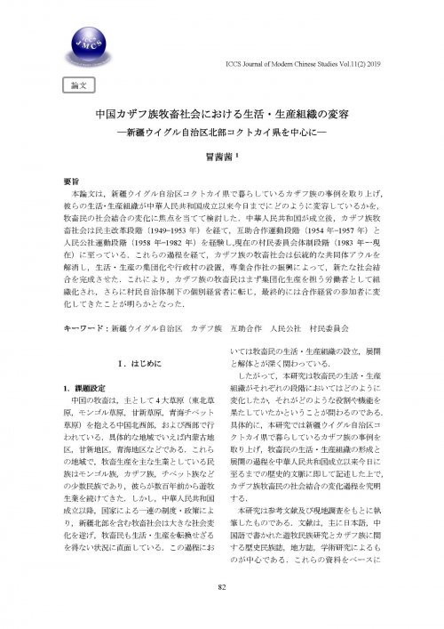 中国カザフ族牧畜社会における生活・生産組織の変容―新疆ウイグル自治区北部コクトカイ県を中心に―