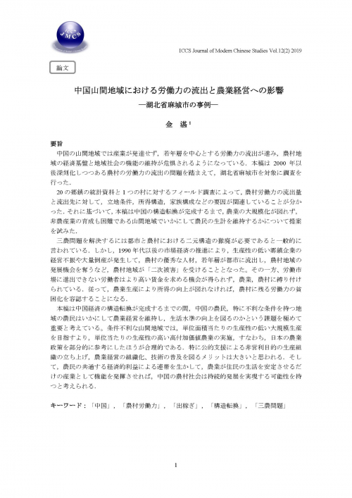 | 収録書籍 | ICCS現代中国学ジャーナル,第12巻,第2号,12月23日(2019) |