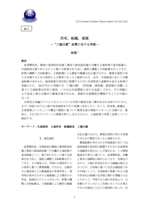 収録書籍 | ICCS現代中国学ジャーナル,第13巻,第2号,1月19日(2021) |