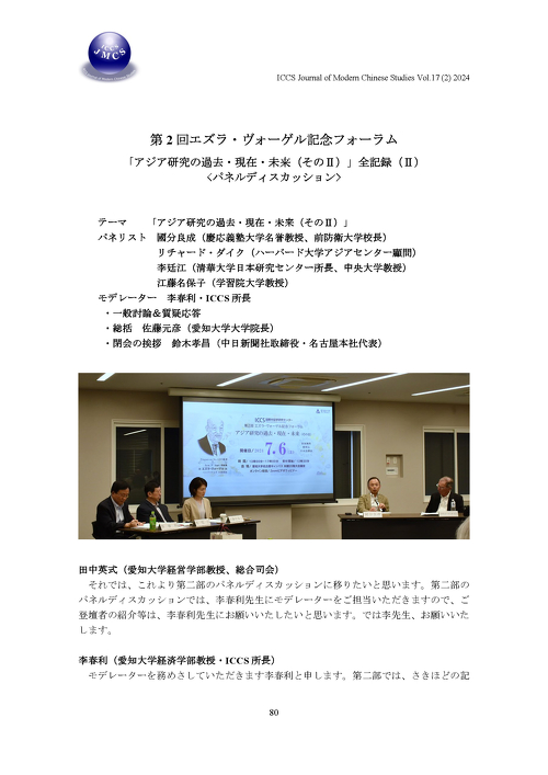第2回エズラ・ヴォーゲル記念フォーラム「アジア研究の過去・現在・未来(そのⅡ)」 全記録(Ⅱ)<パネルディスカッション>