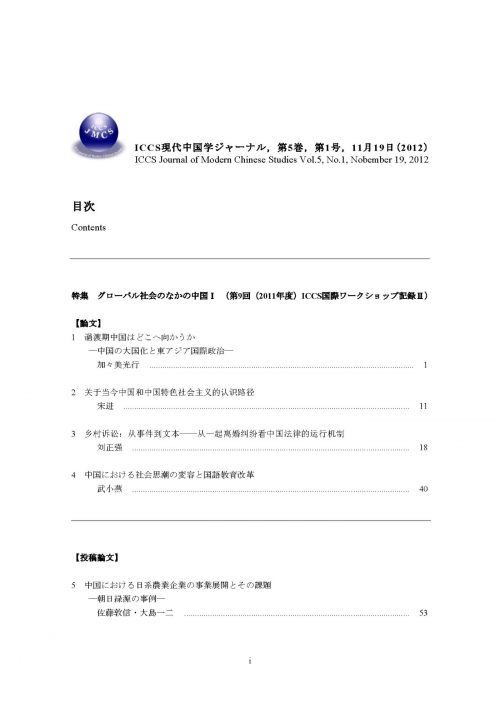 | 収録書籍 | ICCS 現代中国学ジャーナル,第5巻,第1号,11月19日(2012) |