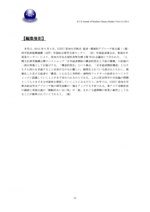 収録書籍 | ICCS 現代中国学ジャーナル,第6巻,第1号,2月24日(2014) |