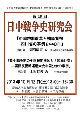 第16回「日中戦争史研究会」開催のお知らせ(10/12)