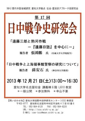 第17回「日中戦争史研究会」開催のお知らせ(12/21)