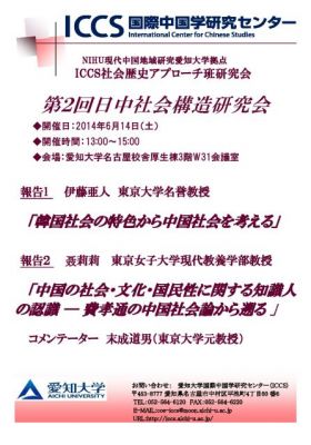 ICCS第2回日中社会構造研究会開催のお知らせ(6/14)