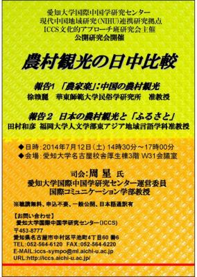 ICCS文化的アプローチ班研究会「農村観光の日中比較」開催のお知らせ(7/12)