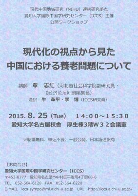 ワークショップ「現代化の視点から見た中国における養老問題について」開催のお知らせ(8/25)