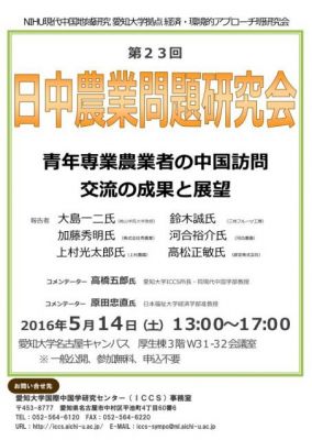【再掲】第23回「日中農業問題研究会」開催のお知らせ(5/14)