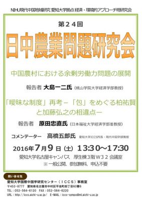 第24回「日中農業問題研究会」開催のお知らせ(7/9)