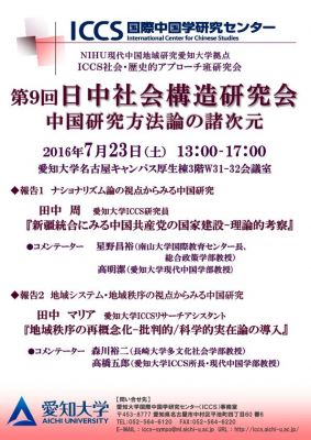 【再掲】ICCS第9回日中社会構造研究会開催のお知らせ(7/23)