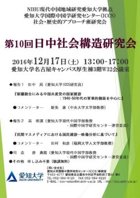 ICCS第10回日中社会構造研究会開催のお知らせ(12/17)