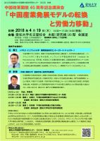 中国改革開放40周年記念講演会「中国産業発展モデルの転換と労働力移動」開催(4/19)