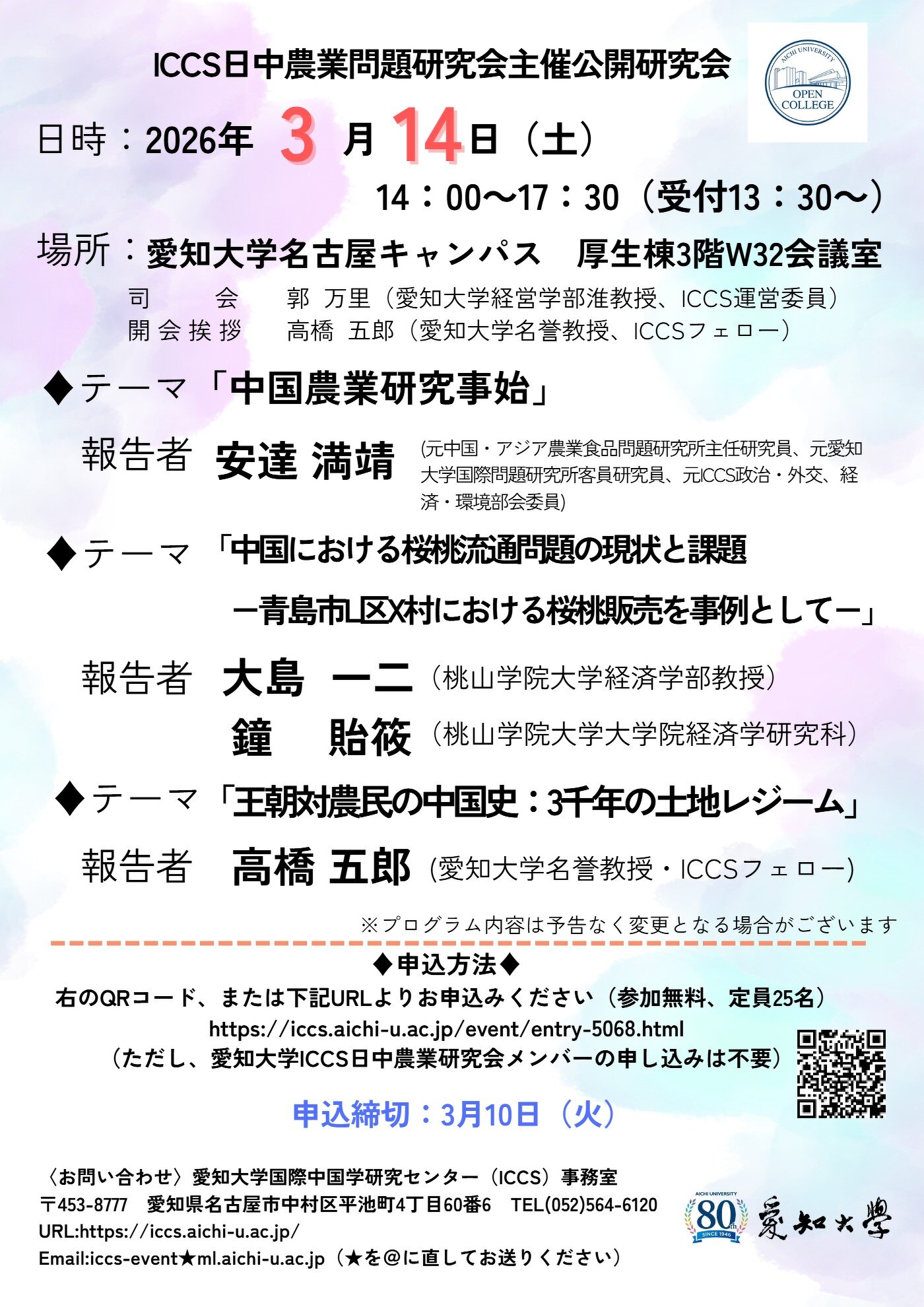 (ただし、愛知大学ICCS日中農業研究会メンバーの申し込みは不要)