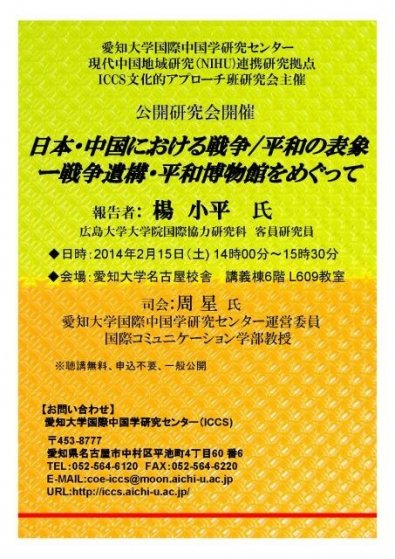 2013年度第3回研究会「日本・中国における戦争/平和の表象ー戦争遺構・平和博物館をめぐって」