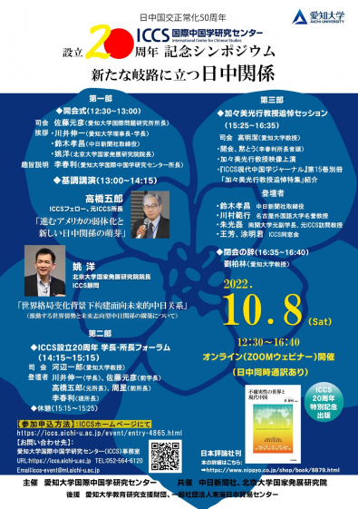 日中国交正常化50周年・愛知大学国際中国学研究センター設立20周年記念シンポジウム「新たな岐路に立つ日中関係」